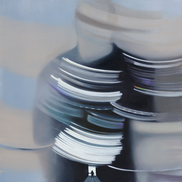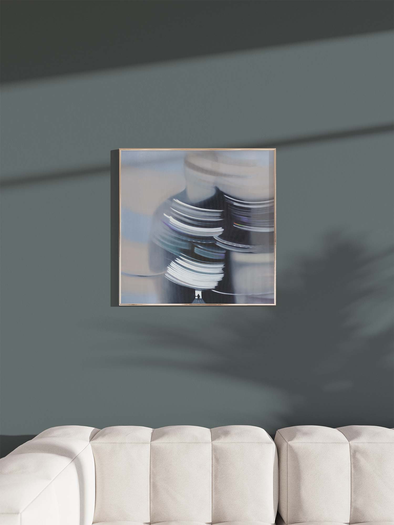 At first glance, Companion appears as a swirling vortex of black and gray, a storm in motionƒ??chaotic, vast, and all-consuming. Yet, within this tempest, a deeper story unfolds. At the base of the painting, a small figure stands before an open doorway of blinding white light. A child, poised at the threshold of the unknown, clutching a hand that emerges from the darkness.