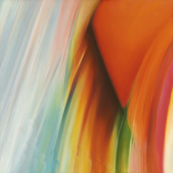 This painting captures the moment when the tension of excitement gives way to rainbow light, washing in with a calming embrace. The warmth of orange from the solar plexus gives way to the iridescent hues of the heart center ready to emerge.